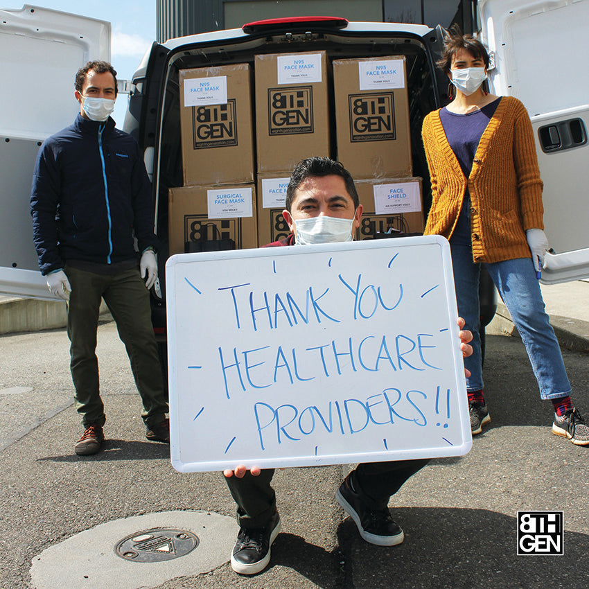 Louie is proud to give back through frequent donations, grants, mentorship, and passionate advocacy within the communities where he has lived and worked. Showcasing the potential that arises when Native people invest in their own capabilities, Louie and the Eighth Generation team were highlighted in National Geographic, NPR, and the Seattle Times for their response to the PPE shortage, which exemplified Native stewardship, industry knowledge, and generosity. According to the Seattle Times, “Nooksack artist and entrepreneur Louie Gong (really an epic team effort!), in eight days, did what the federal government couldn’t manage since the first death from coronavirus was confirmed on Feb. 29 in Washington state: he sourced and supplied thousands of masks to protect health workers at the Seattle Indian Health Board.”